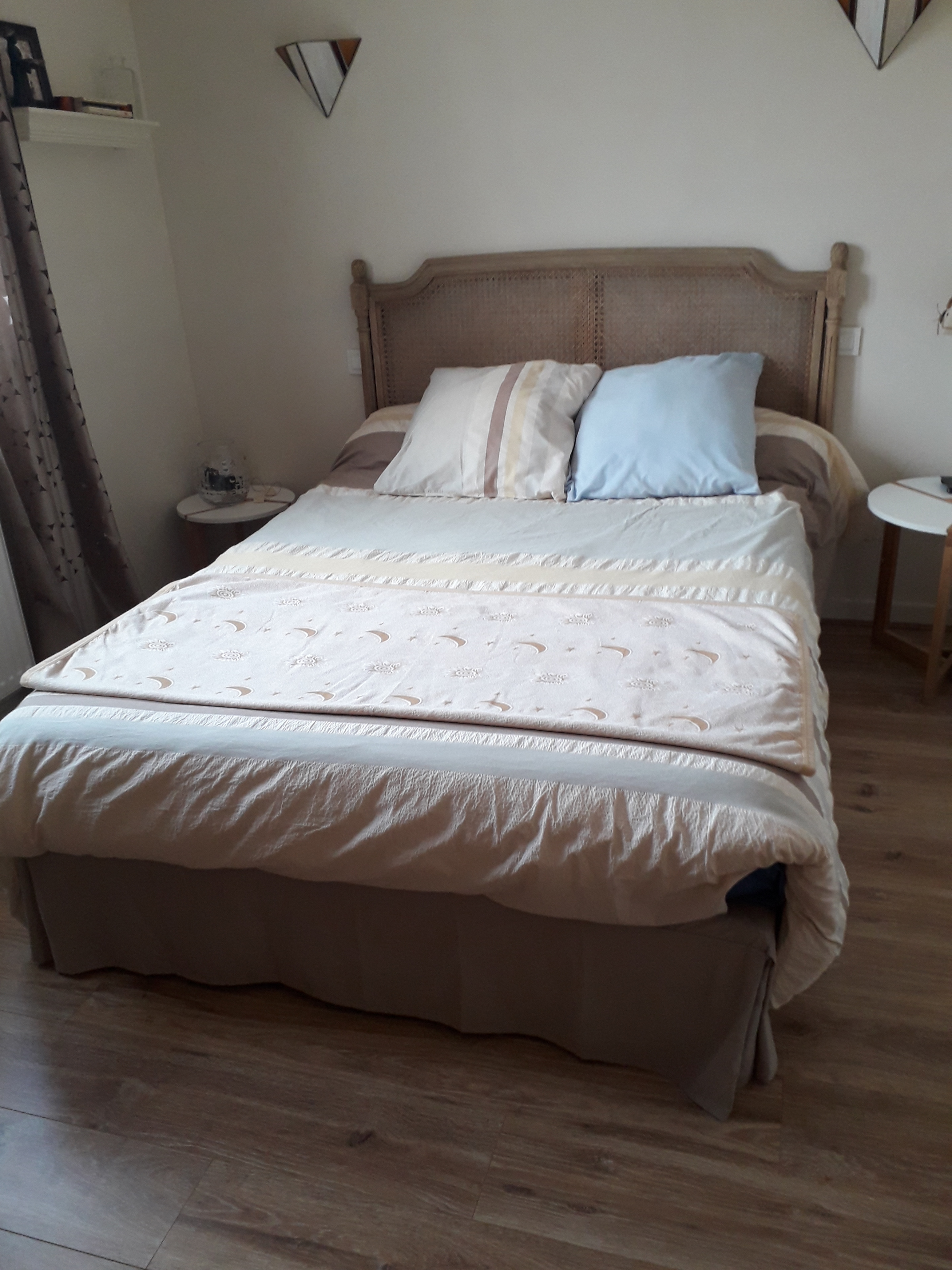 Vous pourrez garer votre véhicule dans la cour. La chambre, à l'étage, est équipée d'un lit en 140 (literie récente et confortable), d'un placard mural, d'un fauteuil et d'une console.