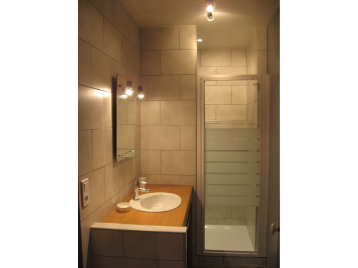 Salle d'eau avec douche et vasque sur meuble. WC indépendant.