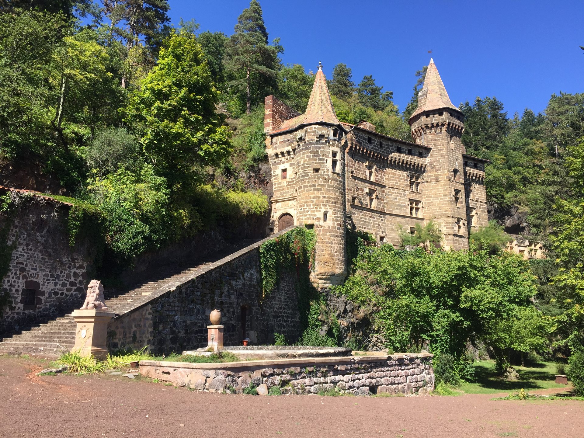 Accroché aux flancs d’un ancien volcan, le château s’élève sur l’un des sites les plus anciens d’Europe ayant révélé des traces de présence humaine, occupé sans interruption depuis le Néolithique. La famille de La Rochelambert s’y établit dès le XIIᵉ siècle. Incendié en 1562 par les huguenots du sieur de Blacon, l’édifice est ensuite reconstruit à la Renaissance par le marquis François de La Rochelambert et son épouse Hélène de Lestrange. Au XIXᵉ siècle, George Sand y séjournera le temps de quelques heures.